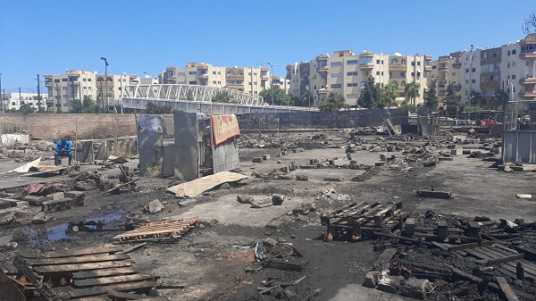 النيران تلتهم مآوي مهاجرين غير قانونيين يحتلون مسار الترامواي قرب المحطة الطرقية أولاد زيان
