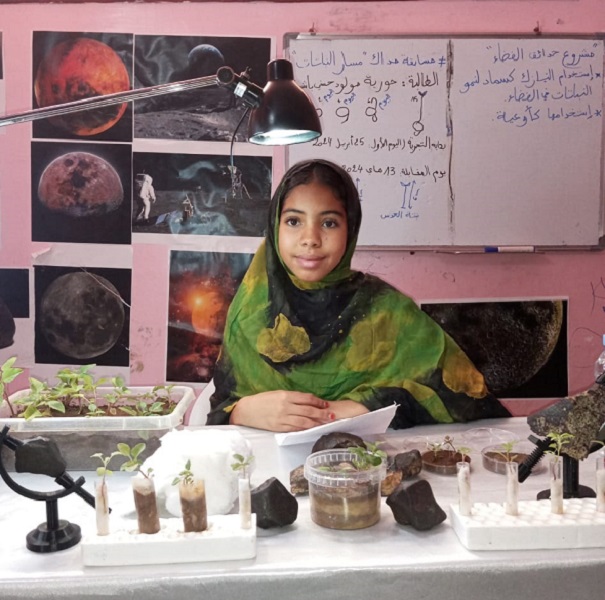 تمثّل حورية، التي تتابع دراستها بالجدع المشترك العلمي بمدينة السمارة، المملكة المغربية في هذه التظاهرة العلمية الدولية، بفضل مشروعها الابتكاري المتعلق بـزراعة النباتات في الفضاء، الذي يهدف إلى توفير حلول مستدامة لتغذية رواد الفضاء في بيئة تنعدم فيها الجاذبية.
